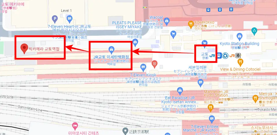 교토 역에는 역사와 연결되어 가전제품과 의약품, 과자 등을 판매하는 빅 카메라가 있고 역 근처에는 이세탄 백화점이 있어 쇼핑을 즐기기에 매우 좋습니다.