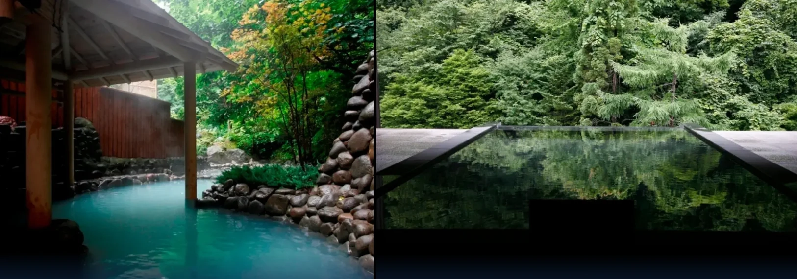 타키노야 료칸에 있는 모든 온천은 천연 온천수를 사용하며, 유황 온천, 철 온천, 소금 온천 등 다양한 종류의 온천을 경험할 수 있다.