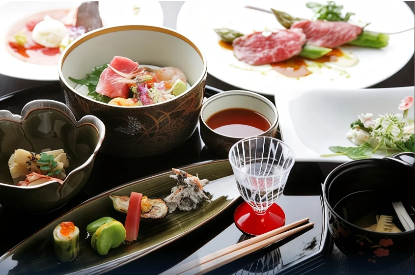 료칸 비용의 대부분을 차지하는 가이세키 요리는 고급 료칸답게 매우 정갈하며, 플레이팅부터가 고급스러운 느낌을 물씬 풍긴다.