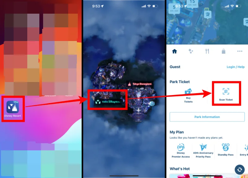 입장권을 구매하면 받을 수 있는 QR 코드는 디즈니씨 입장 전에 미리 앱에 등록하시기 바랍니다.