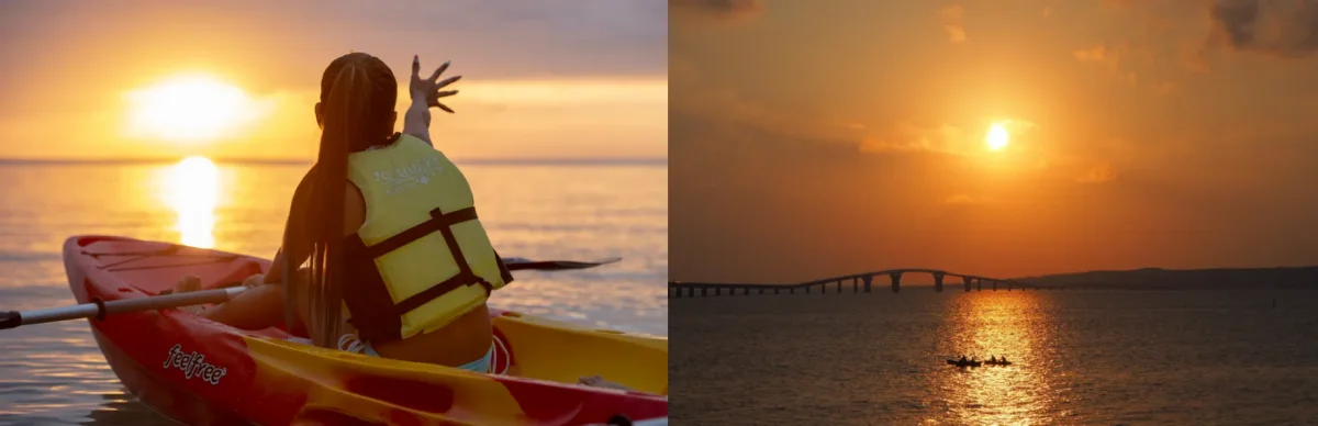 무한히 펼쳐진 수평선으로 가라앉는 태양을 손에 잡힐듯한 거리에서 보고 싶다면 선셋 카약을 추천드립니다!