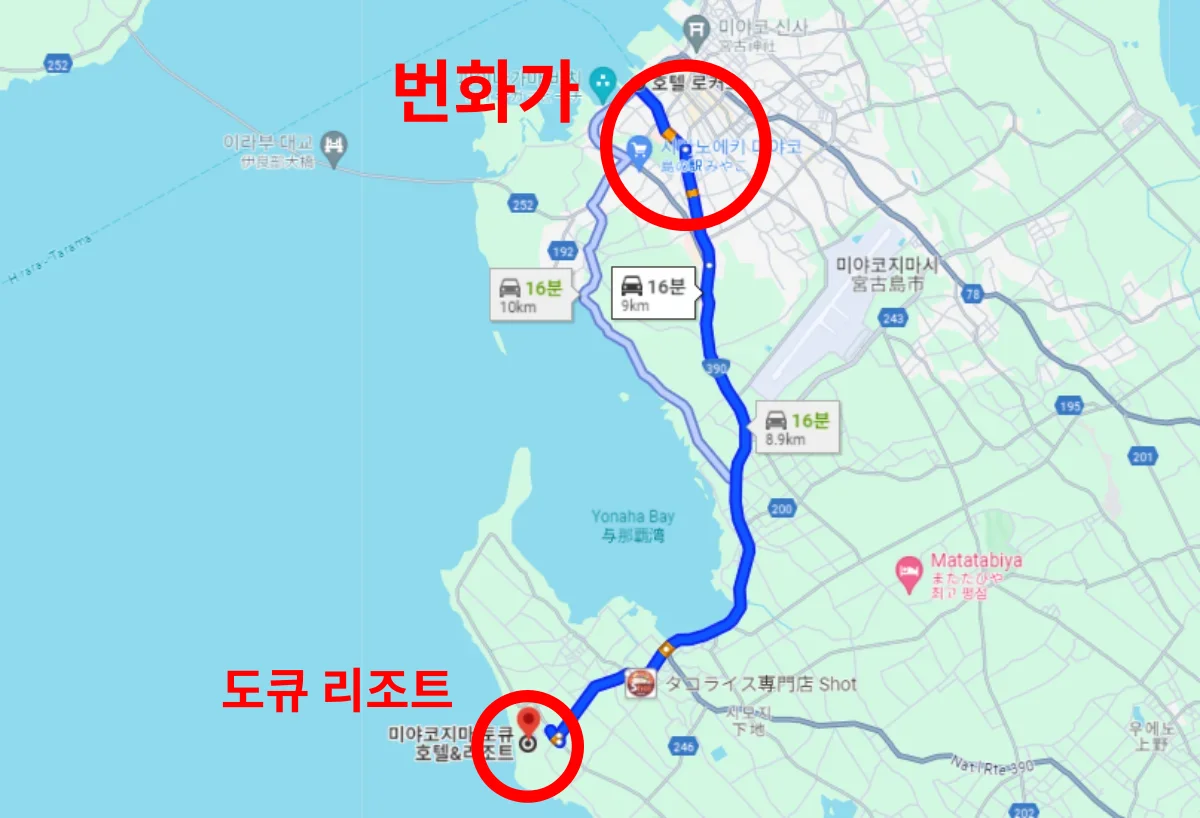 위에서 소개한 호텔들의 대부분은 미야코 공항에서 호텔까지 무료 셔틀 버스를 운행하고 있습니다.