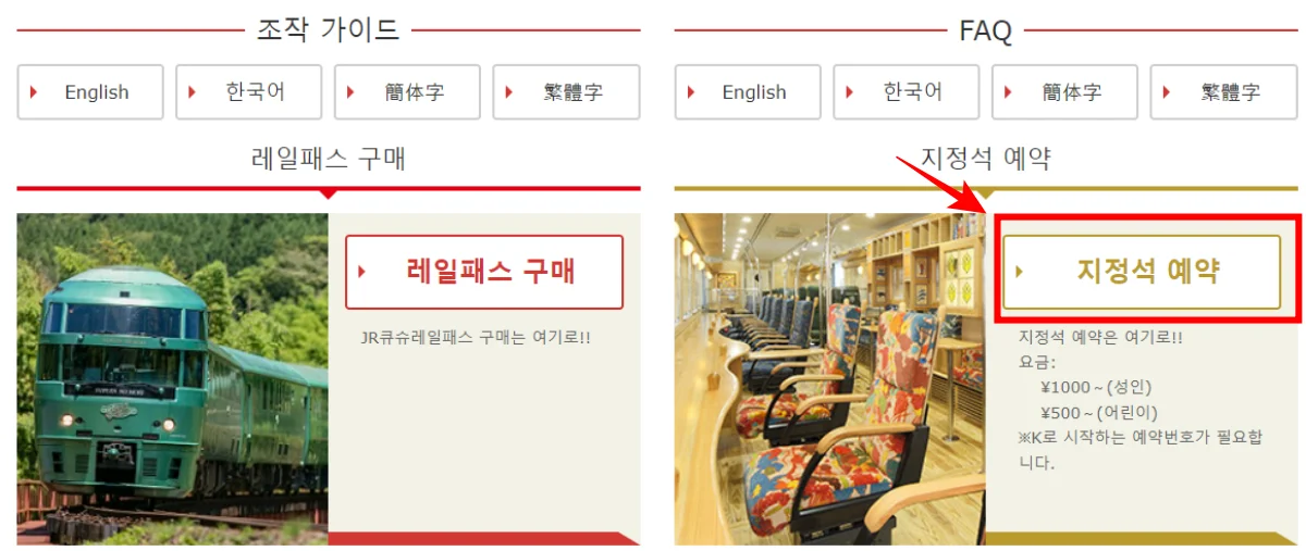 온라인 지정석 예약은 JR 큐슈 레일패스 온라인 예약 사이트에서 진행하실 수 있어요.