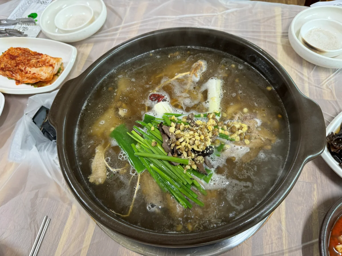 능이 향이 사근 하게 퍼지는 국물에 부드럽게 삶아진 오리고기 한 입 베어 물면!